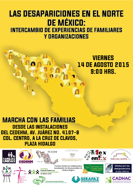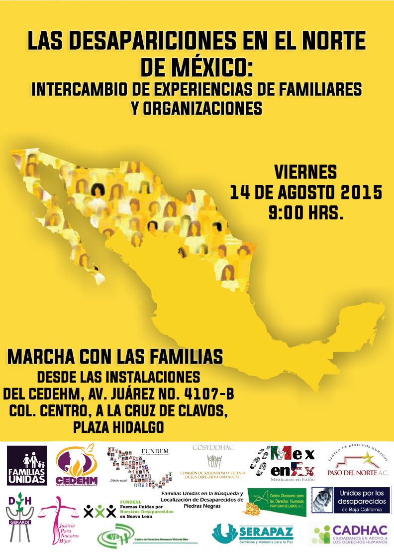 Del viernes 14 al 16 de agosto se llevará a cabo el encuentro “Las desapariciones en el norte de México: intercambio de experiencias de familiares y organizaciones” con el objetivo de compartir experiencias de los familiares y las organizaciones en los procesos de búsqueda, verdad, justicia y reparación; abrir espacios para tratar el autocuidado y el acompañamiento psicosocial; y continuar con los intercambios relacionados con el contenido general de la legislación sobre desaparición de personas en México.