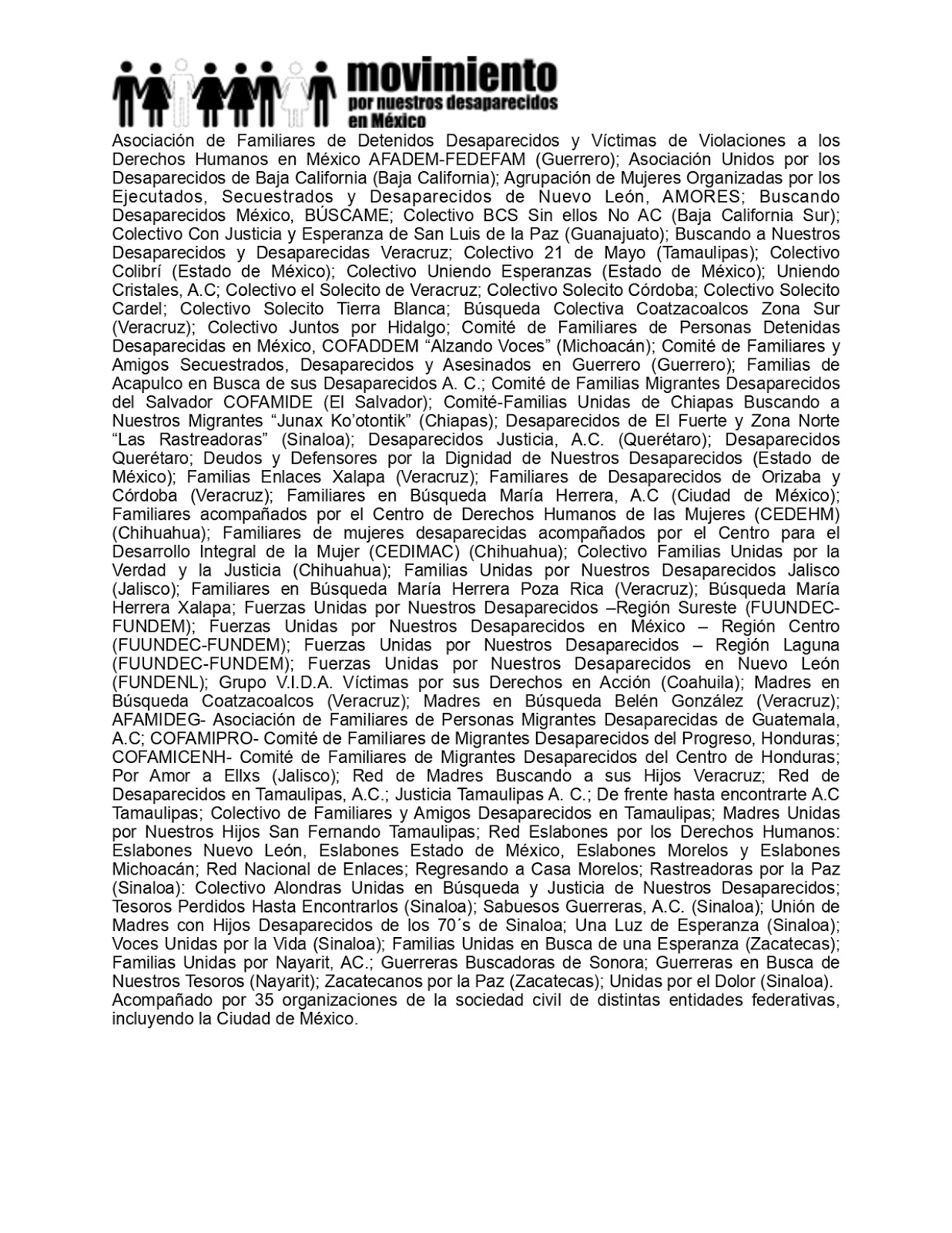 Mexico is a country that suffers from a lack of social justice and in which there is still a long way to go to guarantee human rights for all people. Our work is medullary in the demand for truth, justice, and reparation. Continuing this cause is work that cannot cease and doing so requires solidarity and support. If you want to contribute to our cause, you can make your donation through PayPal.