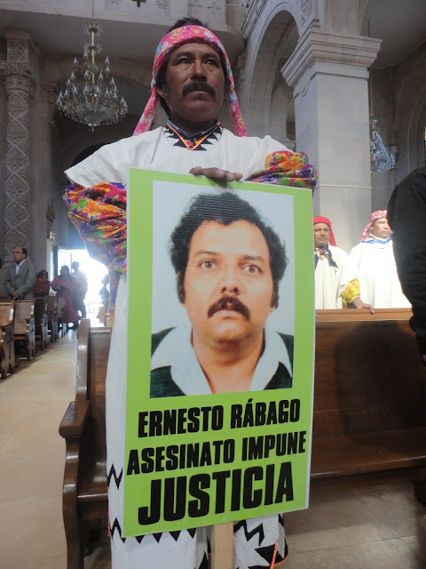El evento, convocado por las organizaciones no gubernamentales, Bowerasa, Mujeres por México, Centro de Derechos Humanos de las Mujeres y Cossyddhac, dio inicio con una misa en el Sagrado Corazón de Jesús, donde se reunieron alrededor de 200 indígenas, integrantes de organizaciones civiles y amistades, para así celebrar la eucarística presidida por el Obispo de la Tarahumara, Rafael Sandoval Sandoval, acompañado por el Pbro. Ignacio BecerraTrigueros CSSR, Pbro. Gonzalo Rascón y Pbro. Camilo Daniel Pérez; colocando en el altar una fotografía del Lic. Ernesto Rábago.