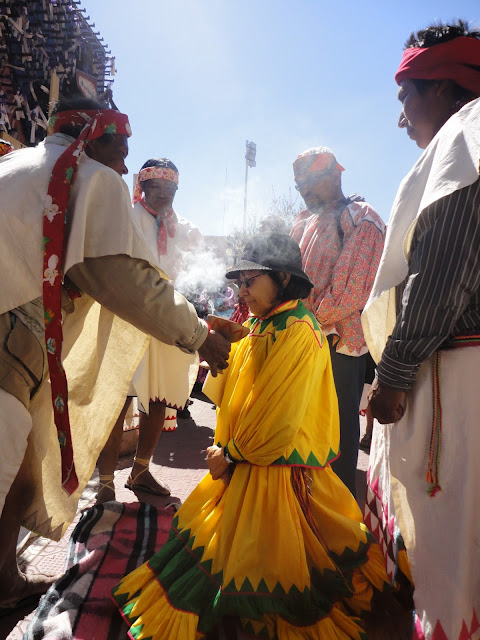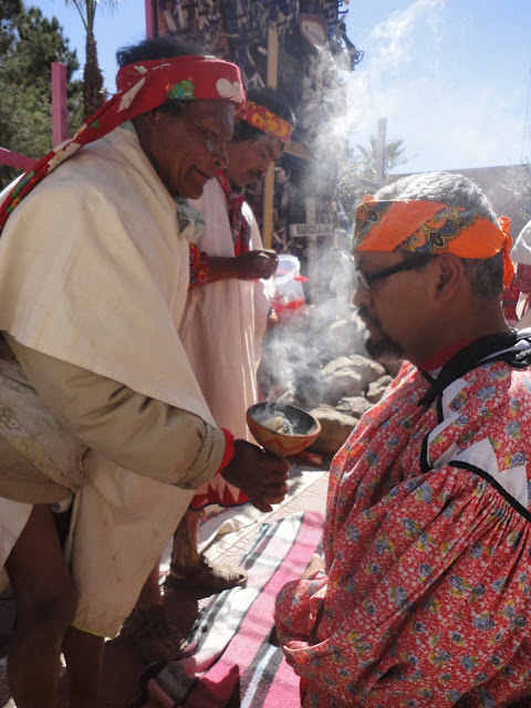 Frente a la Cruz del Lic. Rábago, se realizó una Ceremonia de Purificación, donde la mayoría de los hombres indígenas en compañía de la Lic. Estela Ángeles Mondragón tomaron meke del corazón del maguey, palo de brazil y palo amarillo, acompañado de humo de resina de pino; para fortalecer el corazón y no contaminarse de todo aquello que puede dañar a la comunidad.