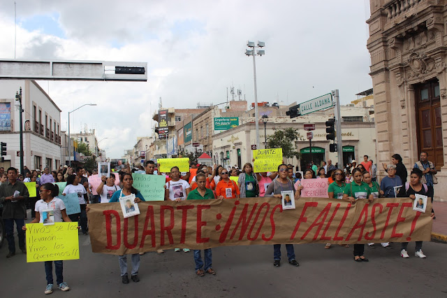 En los últimos años, la desaparición de personas en nuestro país se ha presentado en varios estados, siendo Chihuahua la entidad que ocupa el sexto lugar, de una cifra reconocida por el Gobierno Federal de más de 28,000 personas a nivel nacional. Como consecuencia de la lucha contra el crimen organizado, en Chihuahua se ha presentado un alarmante incremento de personas desaparecidas desde el año de 2006, entre las que se encuentran nuestros familiares desaparecidos que estamos en esta plaza y las que no han podido venir por miedo a seguir sufriendo el maltrato, la falta de atención y las puertas cerradas de las autoridades.