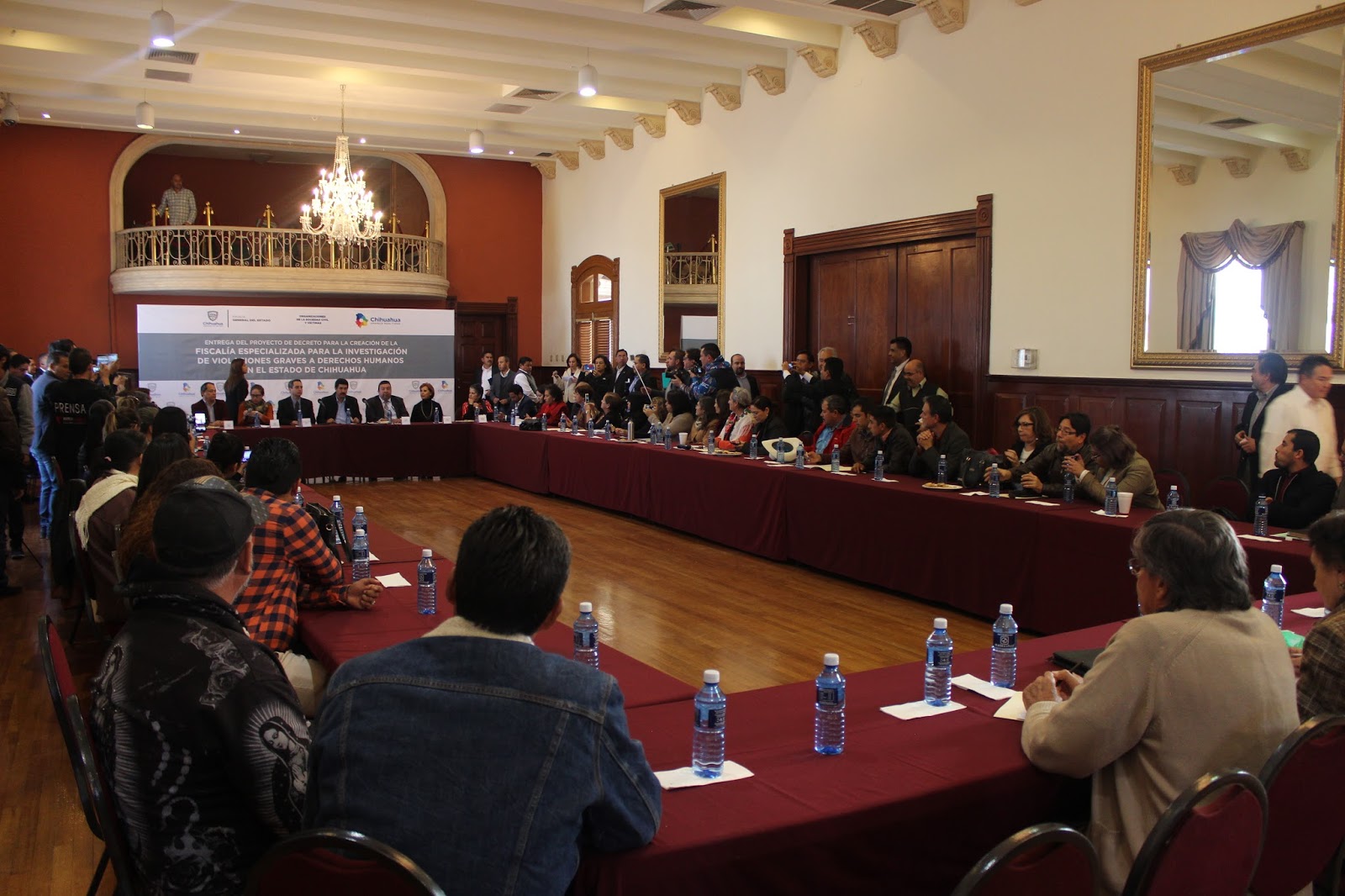 Chihuahua, Chih., 9 de diciembre de 2016.- Ayer por la tarde 26 organizaciones de la sociedad civil y colectivos de víctimas violaciones sistemáticas a derechos humanos, entregaron al gobernador del Estado de Chihuahua, Javier Corral Jurado y a otras autoridades, el proyecto de decreto para la creación de la Fiscalía de Investigación de Graves Violaciones a Derechos Humanos que plantea un modelo que no tiene precedentes en el país.