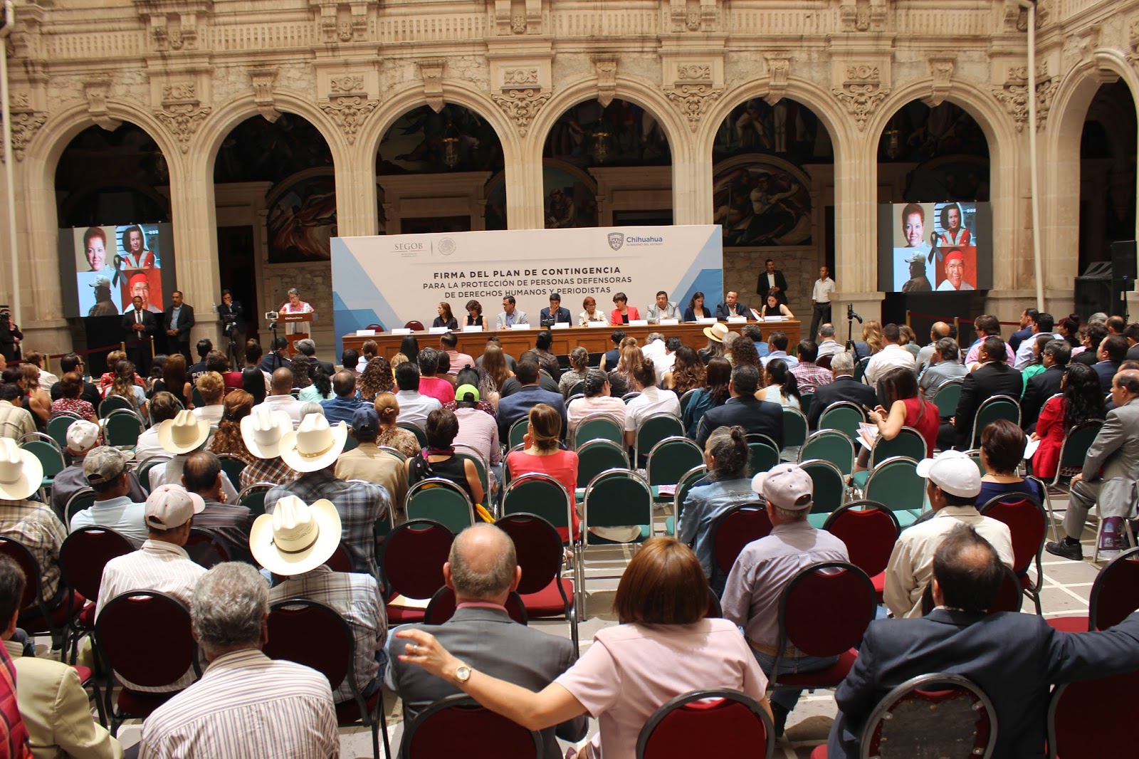 Chihuahua, Chih. a 9 de junio de 2017.- El evento de aprobación del plan de contignecia de la primer alerta preventiva de protección dio inició con el pase de lista de personas defensoras y periodistas asesinadas en Chihuahua desde el 2008 a la fecha, y un minuto de silencio por el asesinato de Isidro Baldenegro, defensor de derechos humanos del medio ambiente; Juan Ontiveros, defensor de derechos humanos en defensa del territorio; Miroslava Breach Velducea, periodista quien fue parte de las primeras mesas de trabajo para el diagnóstico que derivó esta alerta y por el periodista Jesús Adrián Rodríguez Samaniego.