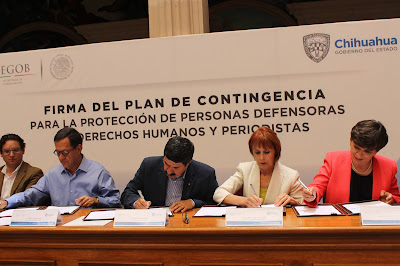 La diversidad de problemas que hoy planteamos la sociedad civil obedecen a situaciones multifactoriales y es, a las autoridades de los tres niveles de gobierno que le compete la atención de las mismas. Es tiempo que las autoridades federales, estatales y municipales asuman lo que les corresponde en la atención de la situación de riesgo que viven permanentemente comunidades enteras en la Sierra Tarahumara por el problema del narcotráfico, el despojo de la tierra y los recursos naturales donde han tenido que emerger los defensores de derechos humanos con el consabido riesgo de pérdida de su vida que corren permanentemente. Mismos problemas que también se trasladan a las zonas urbanas en nuestro Estado.
