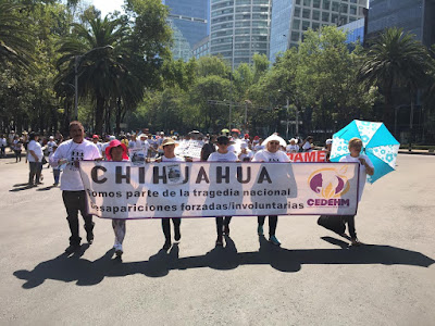 Bajo la consigna de “Si nos faltan nuestras hijas e hijos, no hay nada que celebrar”, quienes asisten demandan la búsqueda y presentación inmediata y con vida de las personas desaparecidas, el alto a la impunidad y el castigo para los responsables.