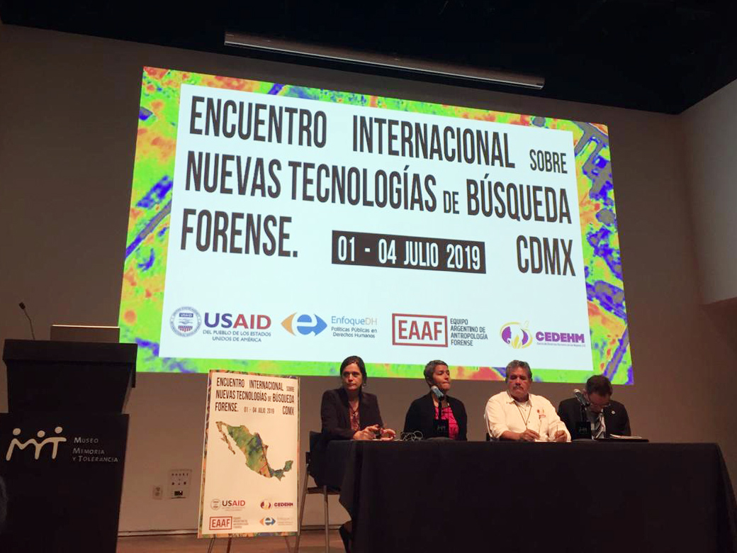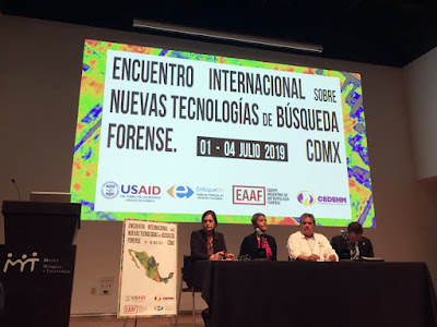 Ciudad de México, 4 de julio de 2019.- El Encuentro Internacional sobre Nuevas Tecnologías de Búsqueda Forense que se llevó a cabo en la Ciudad de México, presentó nuevas herramientas para la búsqueda de personas desaparecidas y evaluó posibles aplicaciones al contexto mexicano, especialmente para la localización de fosas clandestinas. Durante cuatro días participaron del Encuentro familiares de personas desaparecidas, colectivos, representantes de la Comisión Nacional y Comisiones Locales de Búsqueda, ministerios públicos, representantes de organizaciones no gubernamentales nacionales e internacionales, periodistas, organizaciones internacionales e integrantes de los cuerpos diplomáticos.